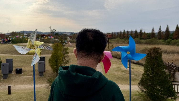 넓은 들판에 펼쳐진 바람개비와 억새들을 보고