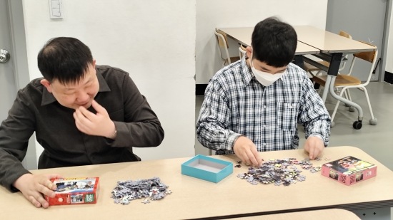 이용인분들이 원하는 퍼즐을 선택할 수 있도록 안내하고